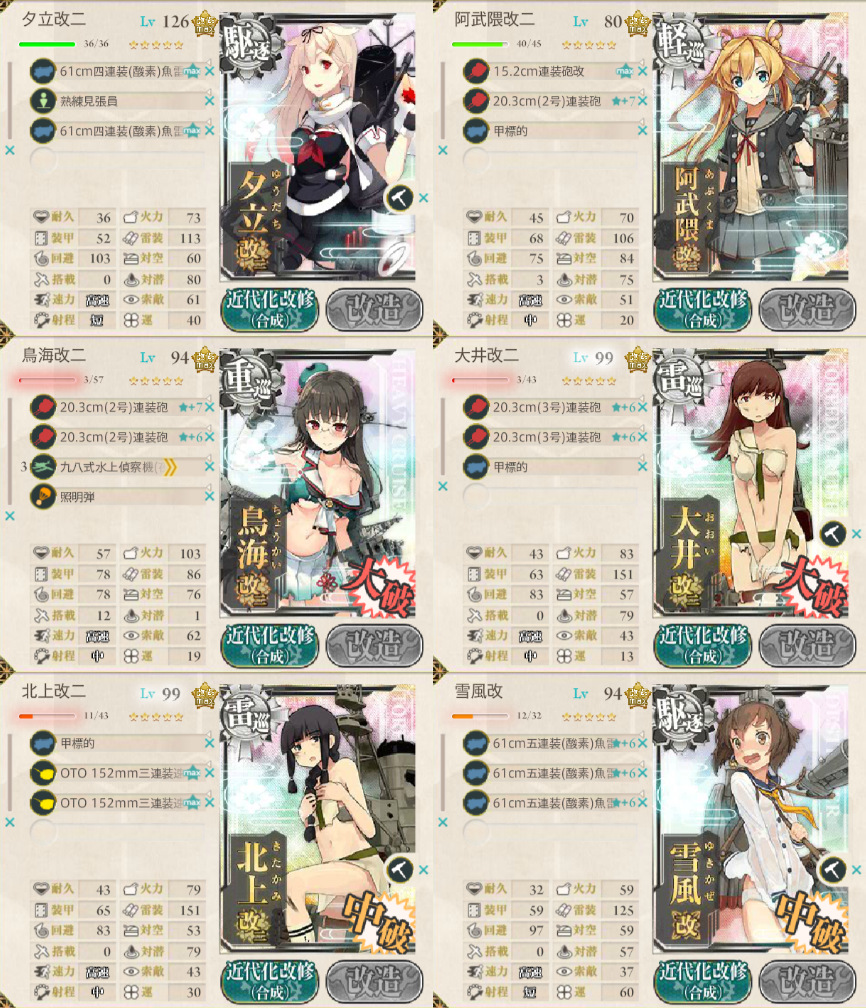 第二艦隊は駆逐艦以外は基本連撃装備。運の値みればそうなるしかないし