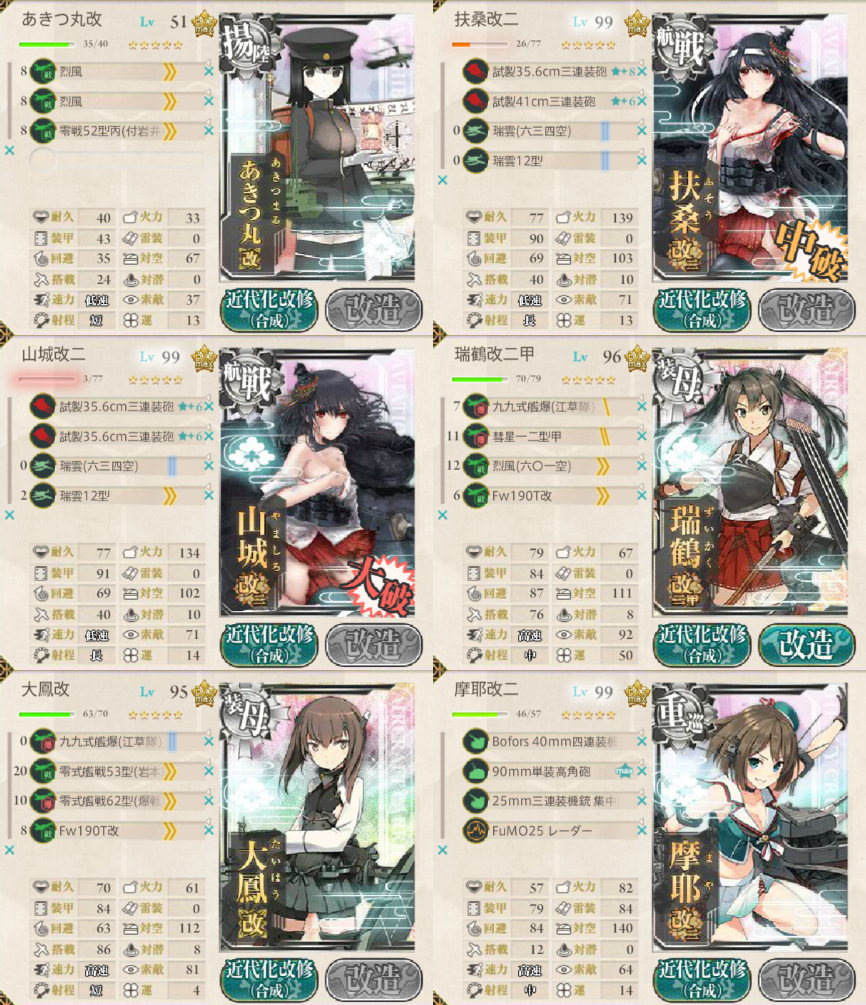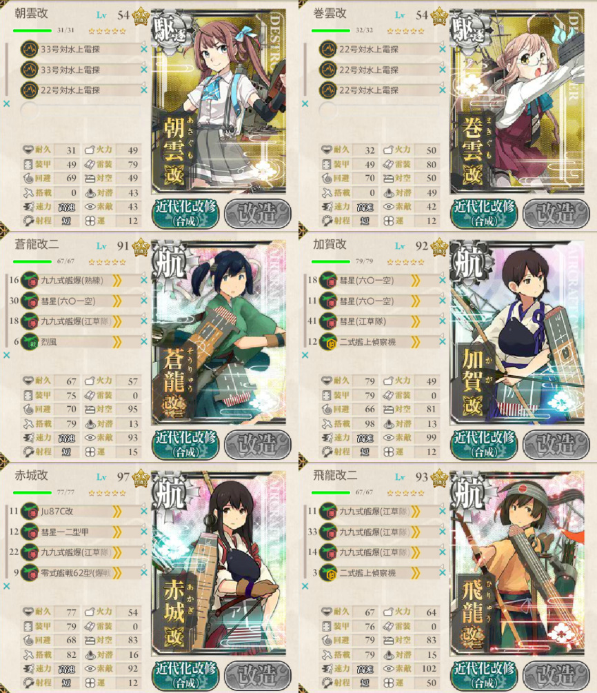最終編成のボスでも制空権確保できるようにしましたが、搭載数の多い一航戦にしたほうが良かったかもしれません