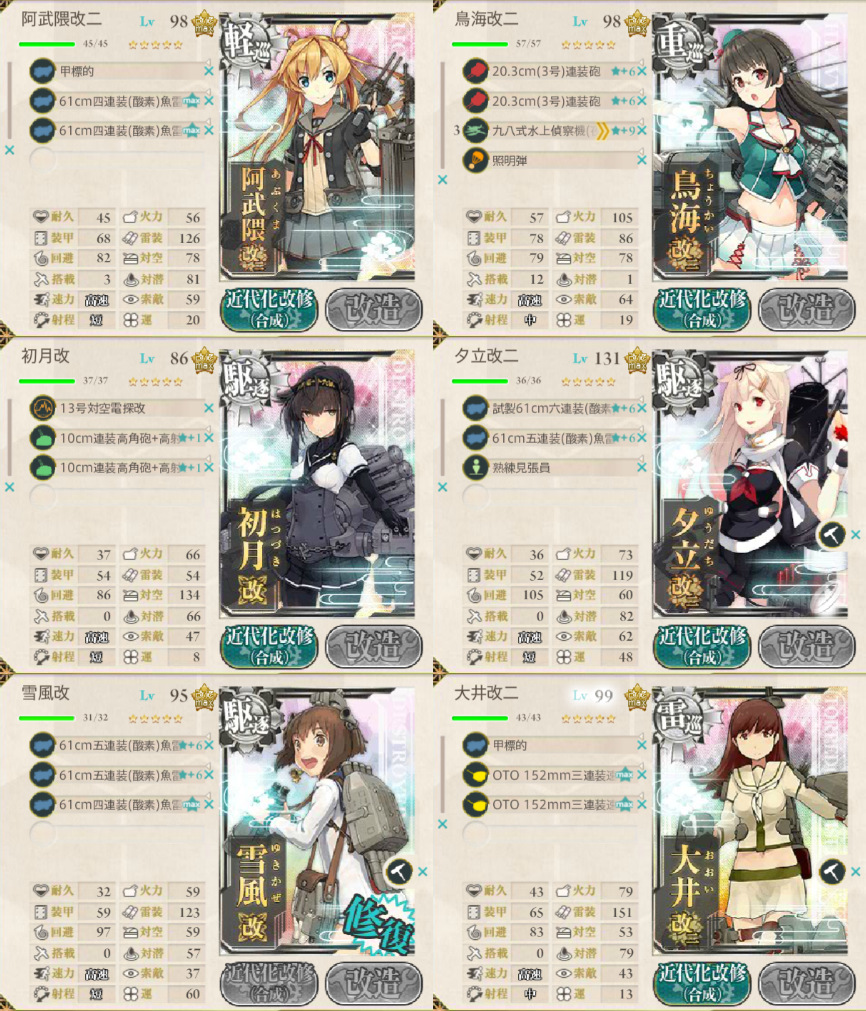 殆ど道中大破はしなかったし、2隻消えるとボス倒せない率が格段に上がったので