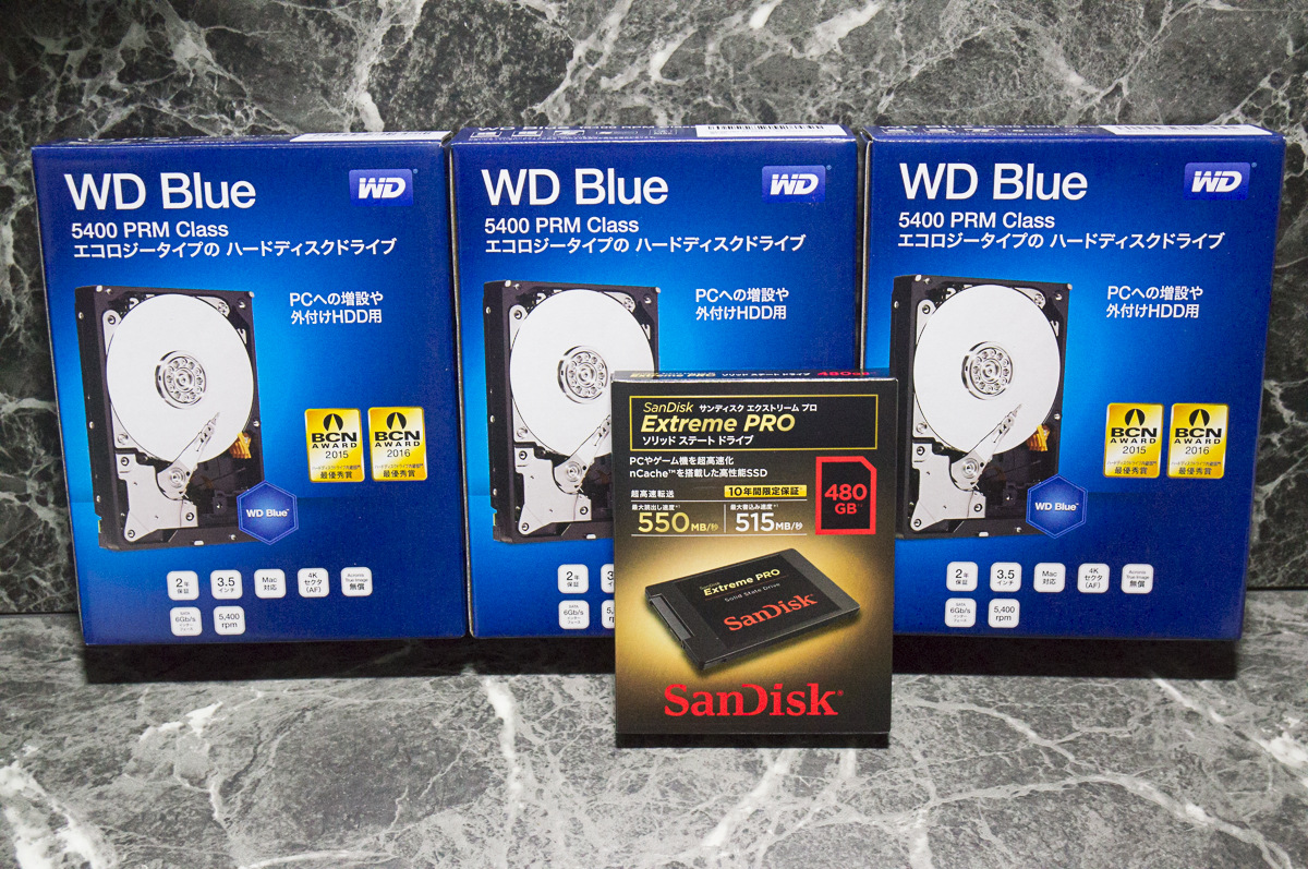 HDDは3TBも4TBも速度は求めないのでWD社のブルーシリーズ(実質グリーンシリーズらしい)