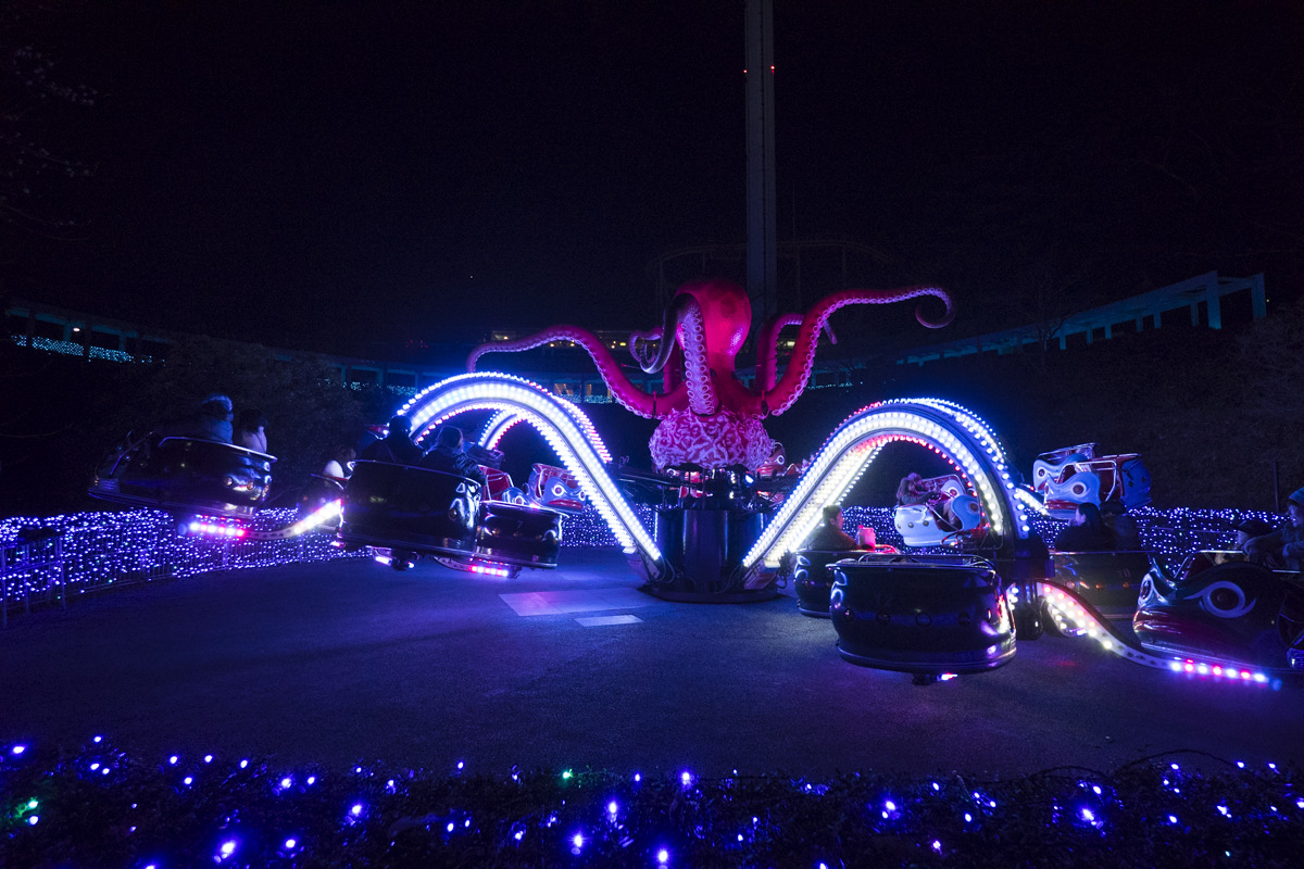 イルミネーション入園料+夜間営業アトラクションフリーパスは大人1800円