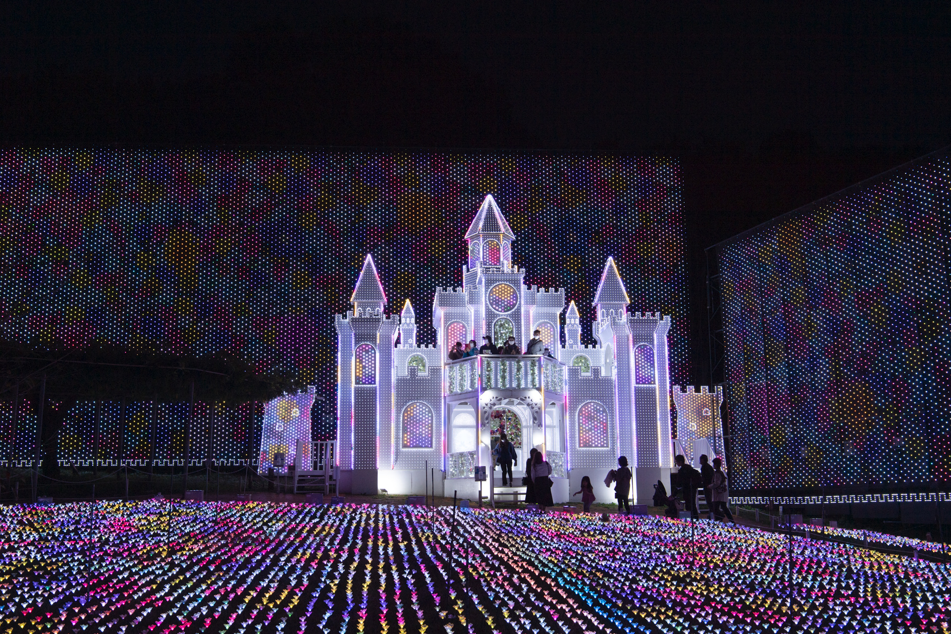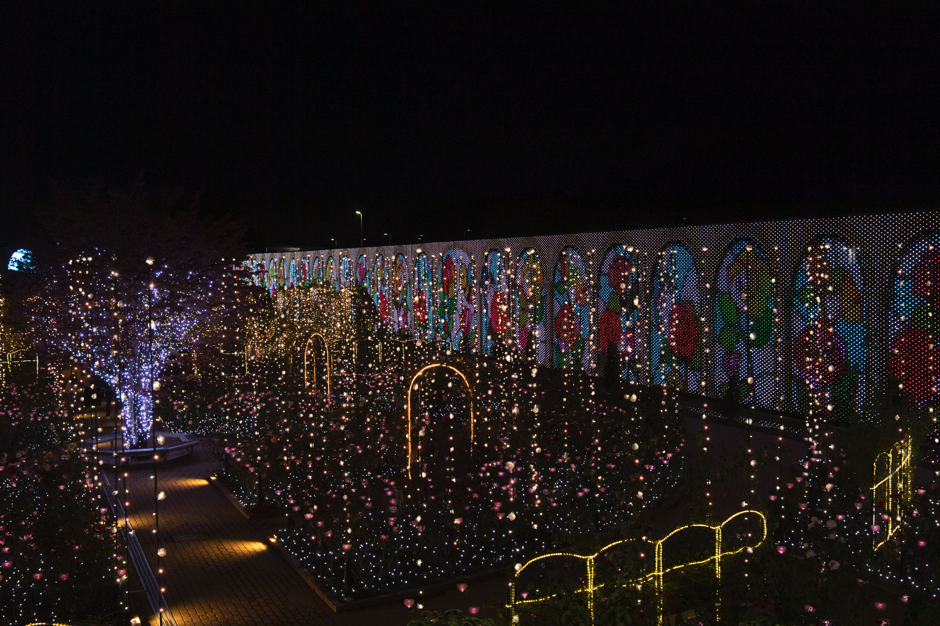 グレードアップした光のバラ園。壁画のイルミネーションは逐次変わります
