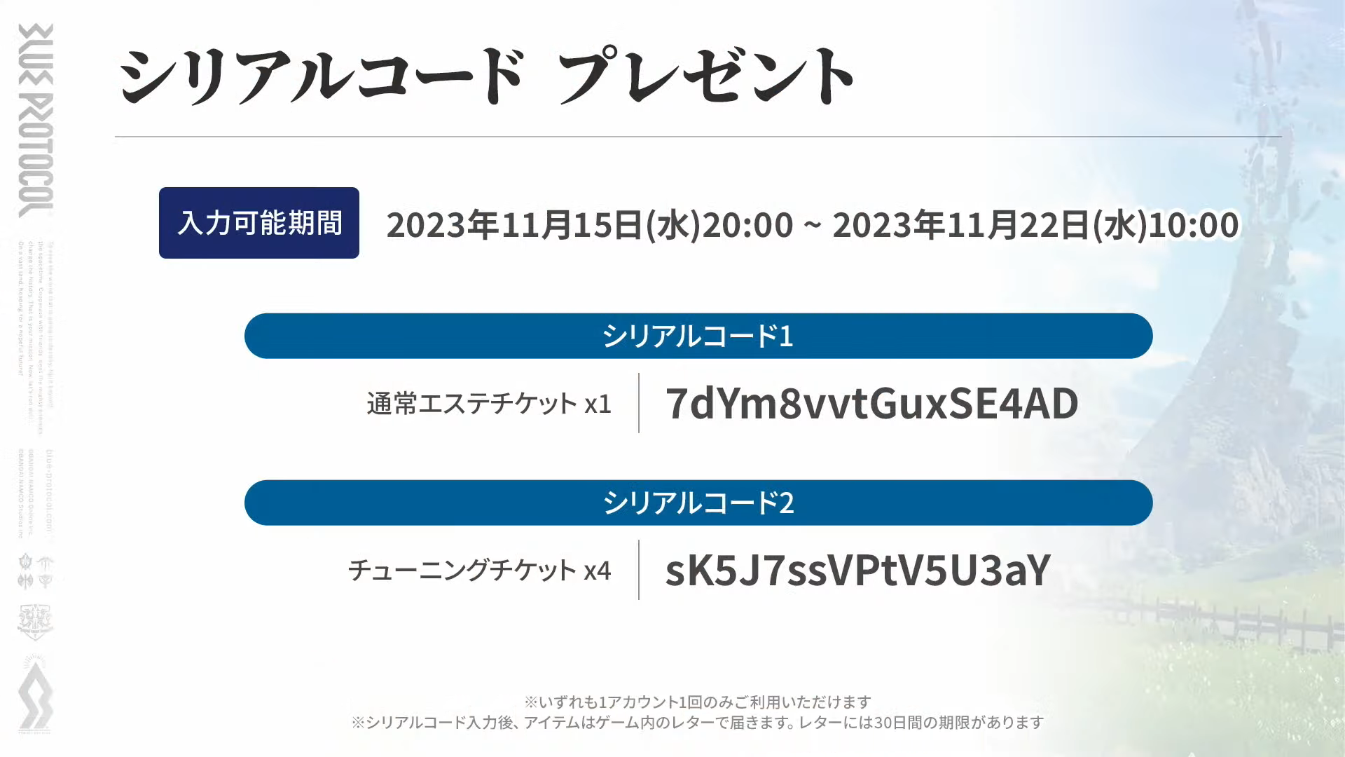 受け取り方はゲーム内ではなく