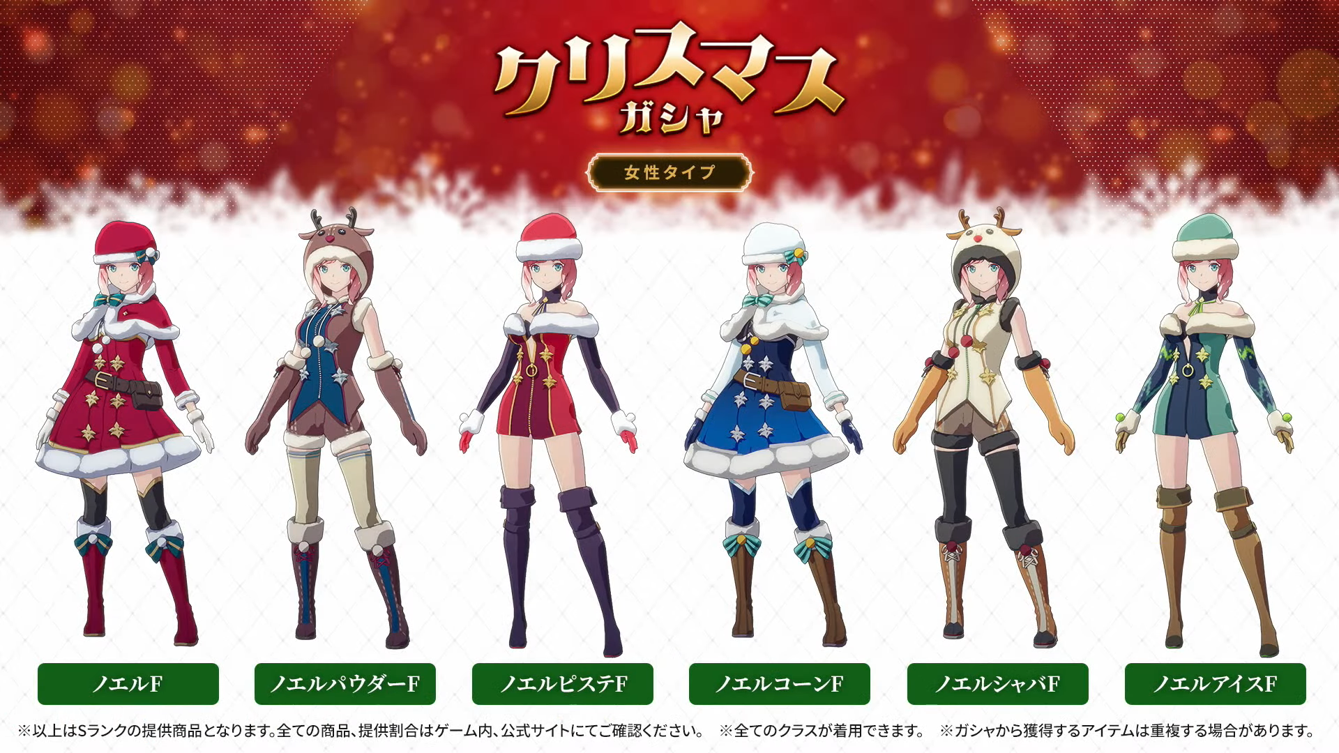 バンナムのアカウント内ガシャ内容(クリスマス)