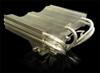 このXP-120はヒートパイプが低い位置にあるためにCPU辺りのコンデンサーに干渉しやすいとのことでしたが、運が良く私の使っているマザーボード(GA-8IHXP)ではCPU辺りのコンデンサーにギリギリ干渉することなく装着できました