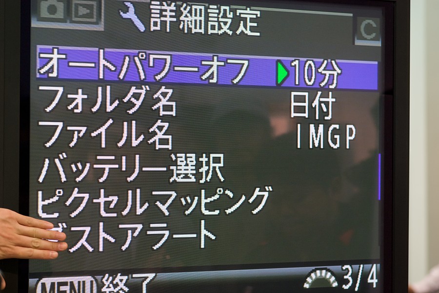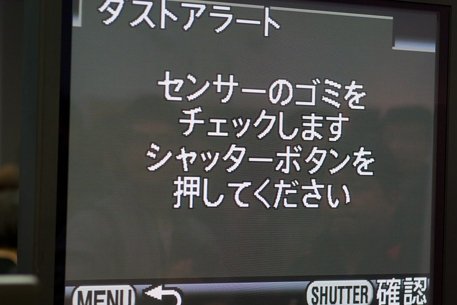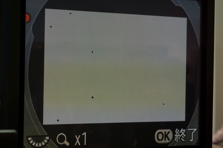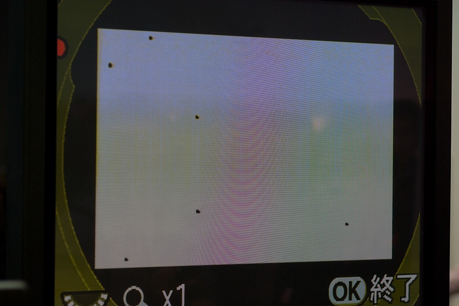 CMOS(実際にはその前にあるローパスフィルター)に付いたダスト(ゴミ)の場所をチェックするための機能の実演をやってました