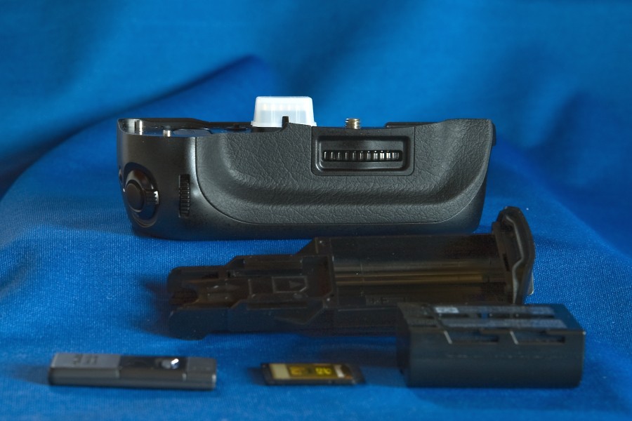 電池は連動して使えカメラ本体に入れる分も含めると2倍の持ちとなりますが他のSDカードやリモコンFはただ収納できるだけです