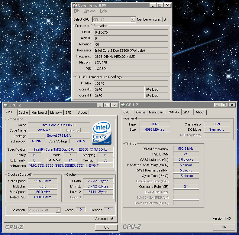 DRAMはCL5 DDR2-1125 FSB:DRAM=450:563=4:5で安定しているようです