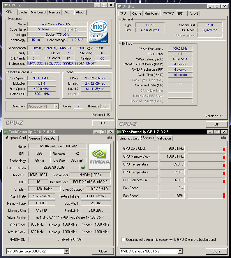 7900GS OC版と9800GTX定格はこちらまずはCPUとメモリ、ビデオカード(VGA)の詳細から
