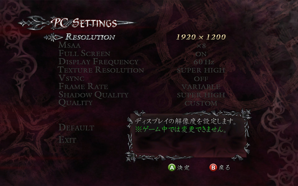 設定は以下の通りでAA8以外は1920×1200の最高設定 S認定