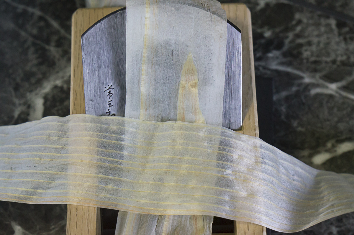 具体的には米ヒバ柾目を5~12μmの薄さで1082尺