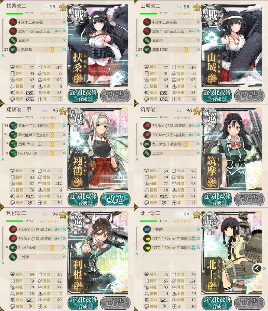 中央ルート 削り構成(航戦2・装母・航巡2・雷巡)