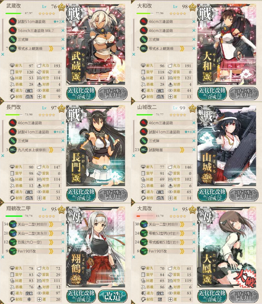 撃破は中央~下ルート(戦艦2・航戦2・空母2)