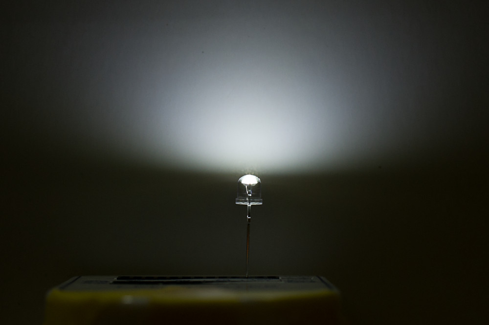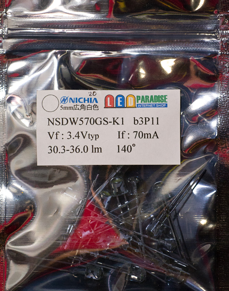 5mmLEDが光っているように見えますがファイバーの光がLEDの裏から透けて見えるだけです
