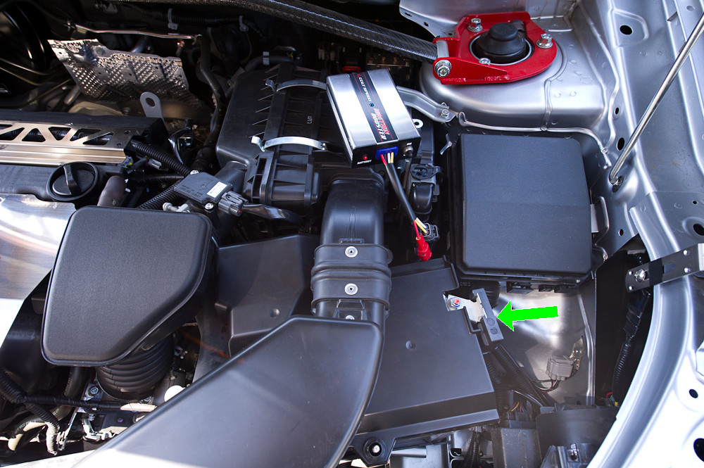 バッテリーの上を通っているエアーインテークパイプを外して取り付けることになります